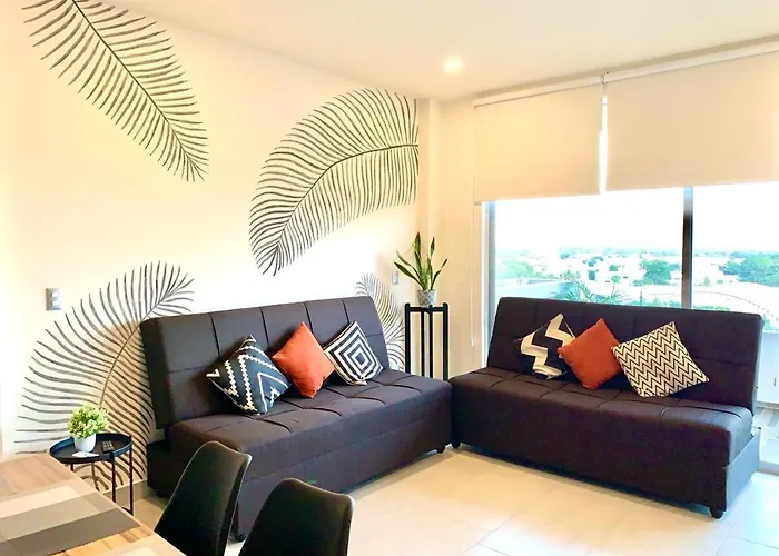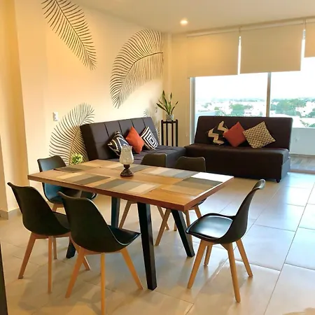 This property comprises an equipped kitchen for self-catering. The barbecue J&R Ribs Costilleria is situated at a medium distance from the 2-bedroom apartment. The 100 m^2 apartment is 20 minutes by car from Cancun airport. The accommodation has a swimming pool and a sun terrace.